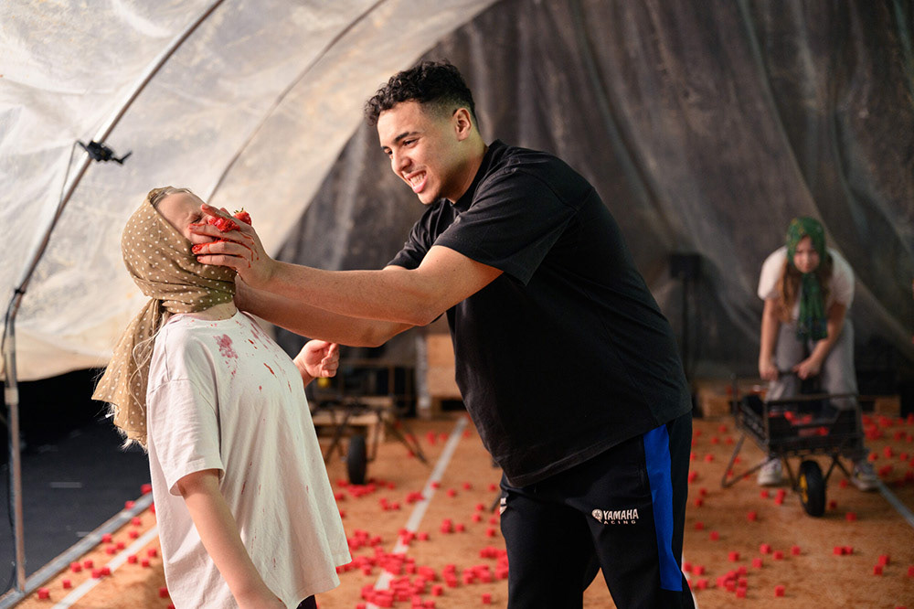 Production: Fix & Foxy / Director: Tue Biering / Light design: Balder Nørskov / Sound design: Daniel Fogh / Costume assistance: Clara Bisgaard / Props: Josefine Else Larsen / Camera: Marie Munkner / On Stage: Fatima Ez Zohayryed Dryouch, Laila Baomar Khouibi, Mustapha Hertil Oufkir, Manuel Milla Marchal, Luna Bredde, Martha Hansted Lohmann-Dunn, Ester Lundby Almlund, Elna Marie Bach Larsen, Kajsa Østergaard, Augusta Rønsborg, Wilma Melkersen Kalvåg, Elin Marie Schoeneborn, Caius Popa, Tiberiu Bosancu / Venue: Republique
